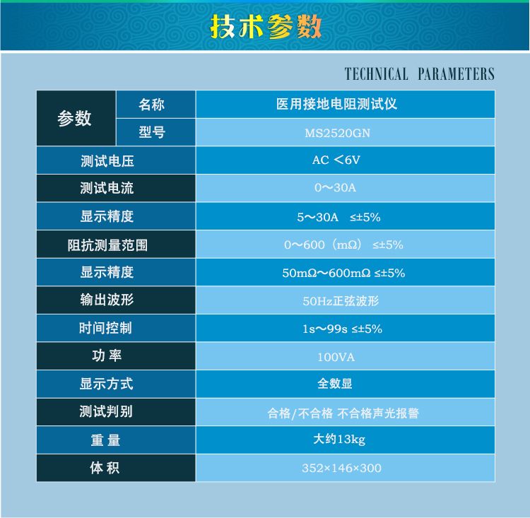 1、该系列仪器主要用于医用电气设备接地电阻的测试。2、该系列仪器符合GB9706.1-2007、IEC60601-1:1988标准。