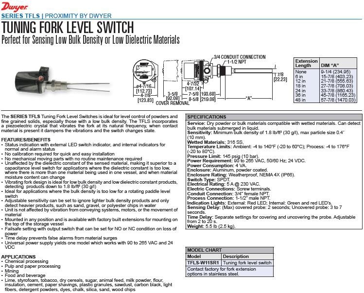Dwyer德威尔 TFLS-W11SR1 音叉式料位开关-上海茂培供应