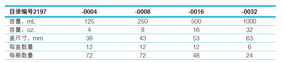 Nalgene 氟化 HDPE 带盖广口瓶 氟化高密度聚乙烯材质 2197-0004