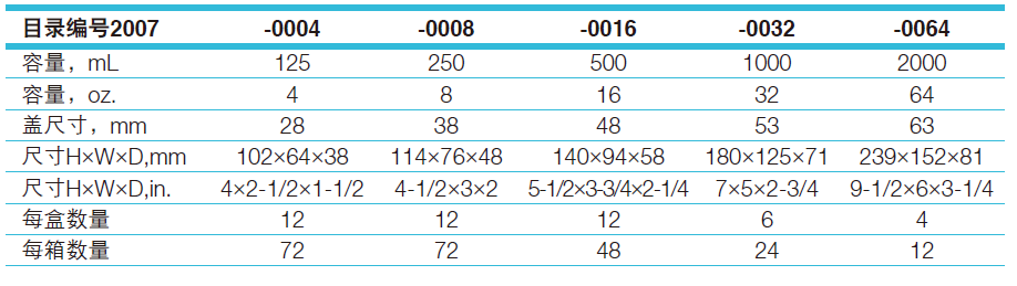 Nalgene 高密度聚乙烯材质 矩形带盖瓶 直边 广口 防漏 2007-0008