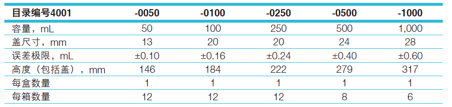 Nalgene B类带螺旋盖容量瓶 聚甲基戊烯 带刻度防漏 4001-1000