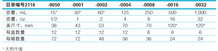 Nalgene 聚丙烯共聚物 125ml 带盖直身广口瓶 高温高压灭菌 2118-0004