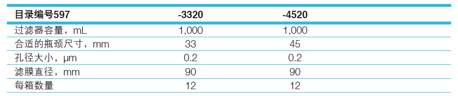 Nalgene 瓶顶过滤器-1000mL容量 MF75系列 聚苯乙烯外壳 597-3320