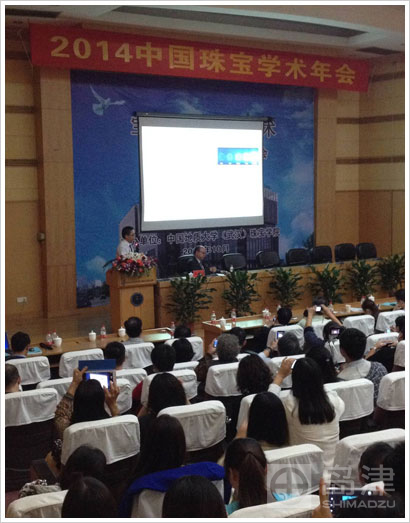 岛津公司积极参与并赞助此次会议,岛津市场部资深光谱专家刘舟先生代表岛津发表了题为《荧光分光光度法测定钻石的荧光强度及荧光颜色》的演讲。他的发表引起与会者的极大兴趣。在演讲结束前,刘舟先生表示岛津期待与广大珠宝专家合作,共同开展珠宝测试方法研发等工作。演讲结束后,有三名专家提问,与刘舟先生深入交流。