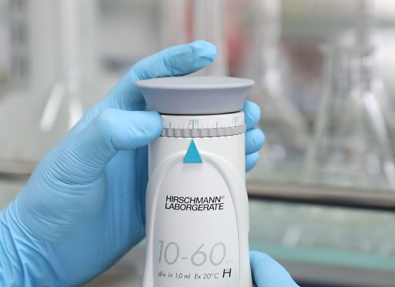 纯净的浓硫酸是无色、粘稠、油状液体,不易挥发。常用的浓硫酸浓度是98%。浓硫酸具有很强的吸水性,对皮肤、衣物等有很强的腐蚀性,如果不慎在皮肤或衣物上沾上硫酸,应立即用布拭去,再用大量的清水冲洗。 目前,一般实验室采用量筒、移液管、移液枪等移取浓硫酸,采用量筒、移液管等固态玻璃量具移取时,会存在移液不安全、人为读数误差大、移液效率低等问题;采用移液枪移取时,由于浓硫酸密度大,粘度大,有粘滞性,会出现移液体积误差较大甚至是无法吸液等现象,且硫酸蒸汽的强腐蚀性会损坏枪体,降低移液枪使用寿命。针对这些问题,某海关检验检测中心采用了世界上最先进的数字化液体处理设备——德国赫施曼全能型瓶口分配器,实现对浓硫酸快速、安全、高效的移取。 具体操作如下: (1)将瓶口分配器安装在装有浓硫酸的试剂瓶上。 (2)调节仪器上端刻度环至所需刻度,正反向调节皆可,平视刻度即可,无人为读数误差。 (3)缓慢匀速向上拉起控制活塞,进行吸液操作。阶梯式设计控制量程,确保分液量高度精确。 (4)吸液操作完成,开始排液。下按活塞,在排液管管口处接收浓硫酸,移取浓硫酸操作完毕。 (5)移液操作完毕后,旋转密封安全阀对试剂瓶中浓硫酸进行密封,在瓶口位置形成的一层密封性特氟龙材质瓶盖,有效避免瓶中浓硫酸及其蒸汽进入套筒进而损害仪器。 另外,他们还安装防倒底座确保实验操作稳定性;利用万能底座从各种容器中快捷移液。 而且,他们还采用赫施曼延长排液管进行远距离移液,实现快速多次分液。 自从使用了德国赫施曼全能型瓶口分配器,有效规避了浓硫酸移取数据不精准、移取操作不安全、移取效率低、移液枪经常性损坏等问题,海关检验检测中心的实验人员再也不担心移取浓硫酸的实验了。 高效、安全、环保、精准,宝宝以后操作浓硫酸就用它了——赫施曼全能型瓶口分配器!!!