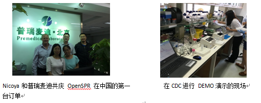 2016年4月,九洋生物成为NICOYA公司正式授权的中国总代理,普瑞麦迪作为九洋公司的子公司,负责生命科学领域的一切业务。由此普瑞麦迪对NICOYA公司OpenSPR系列产品在整个中国市场的推广和销售工作正式拉开帷幕。产品主要包括OpenSPR的仪器系列产品和相关的传感器芯片,用于分子相互作用的分析和研究。