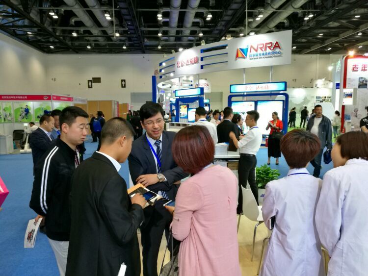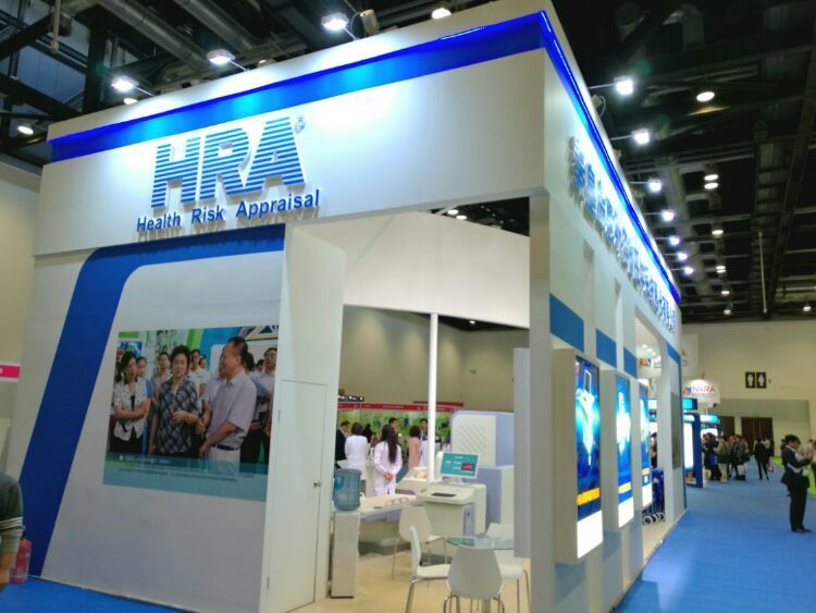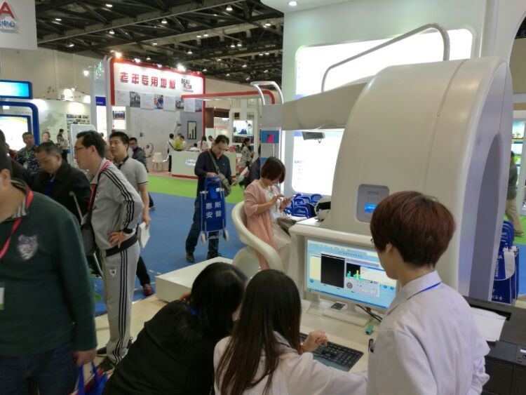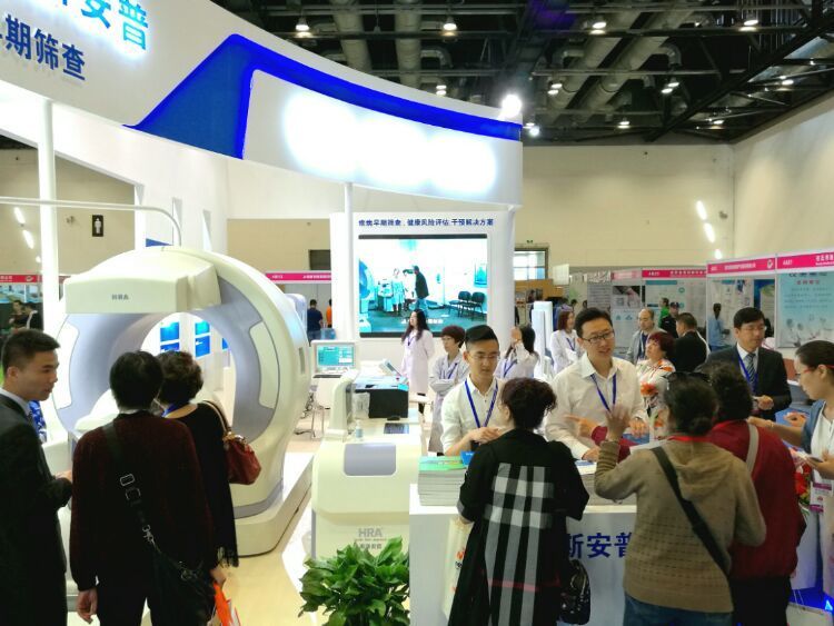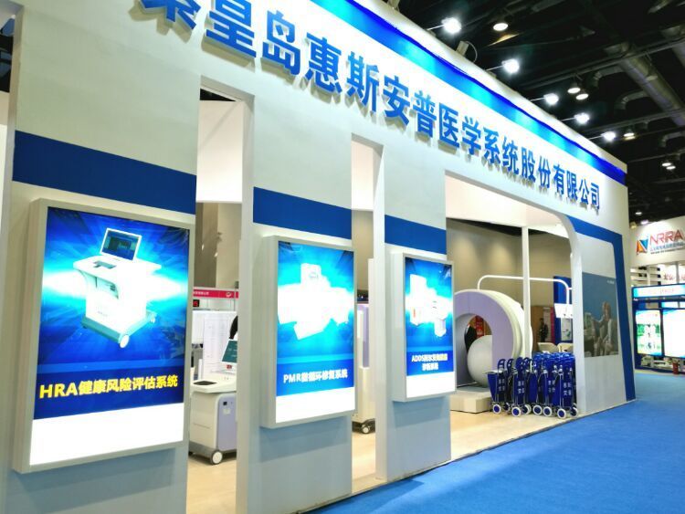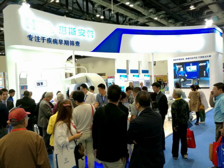 惠斯安普携HRA疾病早期筛查及健康风险评估设备、PMR微循环修复系统、ADDS阿尔茨海默病早期筛查及诊断系统、ADTS记忆力障碍训练系统参展,展位布置很抢眼。