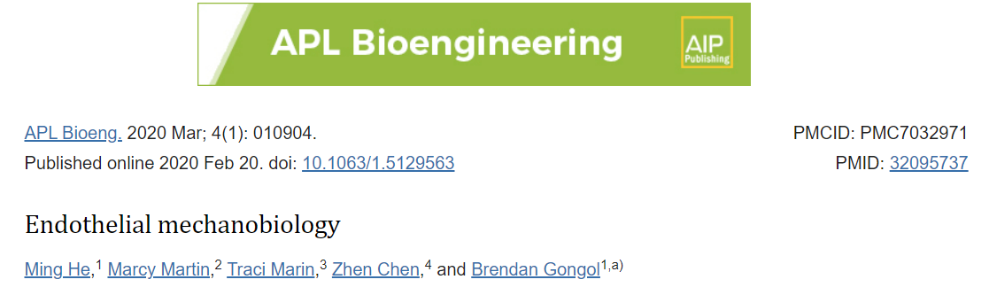 参考文献:He M, Martin M, Marin T, Chen Z, Gongol B. Endothelial mechanobiology. APL Bioeng. 2020 Feb 20;4(1):010904. doi: 10.1063/1.5129563. PMID: 32095737; PMCID: PMC7032971.