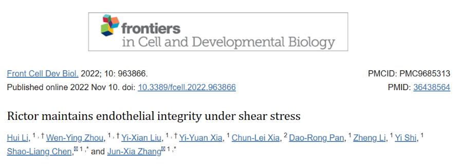 参考文献:Li H, Zhou WY, Liu YX, Xia YY, Xia CL, Pan DR, Li Z, Shi Y, Chen SL, Zhang JX. Rictor maintains endothelial integrity under shear stress. Front Cell Dev Biol. 2022 Nov 10;10:963866. doi: 10.3389/fcell.2022.963866. PMID: 36438564; PMCID: PMC9685313.