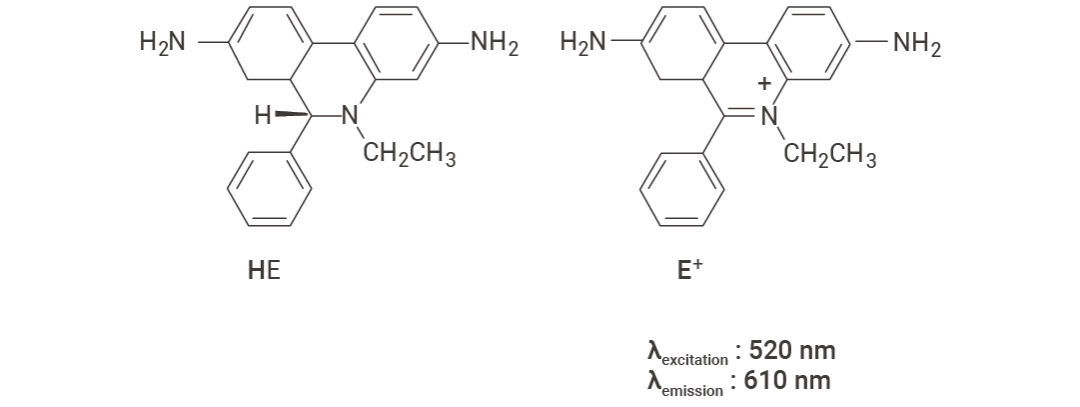 图 3. Hydroethidine (HE) 和 ethidium (E+) 的化学结构[1]。