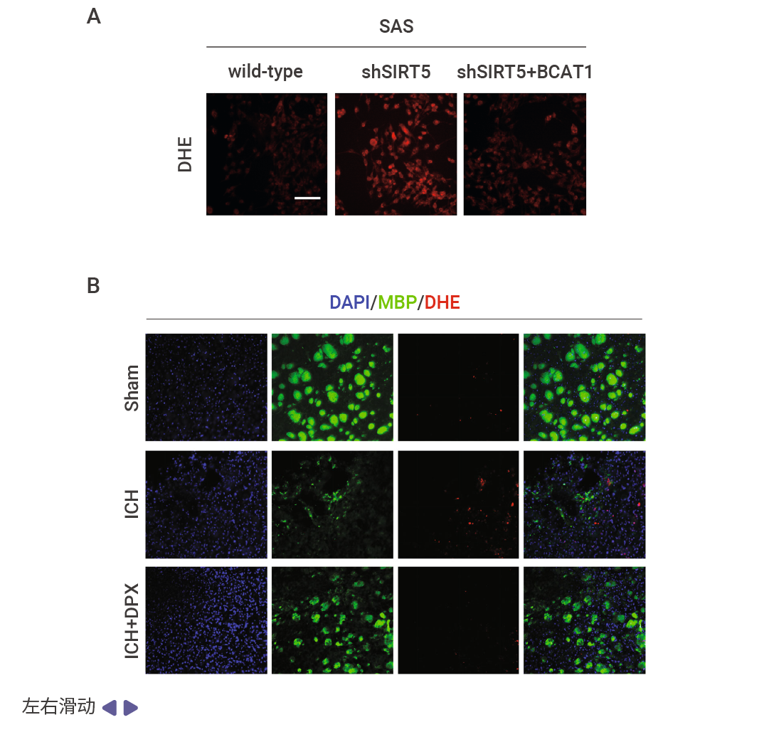 也有部分文献将 DHE 用于石蜡切片,因为固定操作对 ROS 有一定的影响,固定时间、染色浓度等条件都需要根据实际样本情况做调整,总体的染色效果往往也不如未固定的样本,也有可能难以做出理想的效果,实在有固定切片染色需要的小伙伴可以参考上面图 4 的组织染色示例摸索一下,并且建议设置超氧化物歧化酶处理组等实验组来排除可能存在的非特异染色干扰~