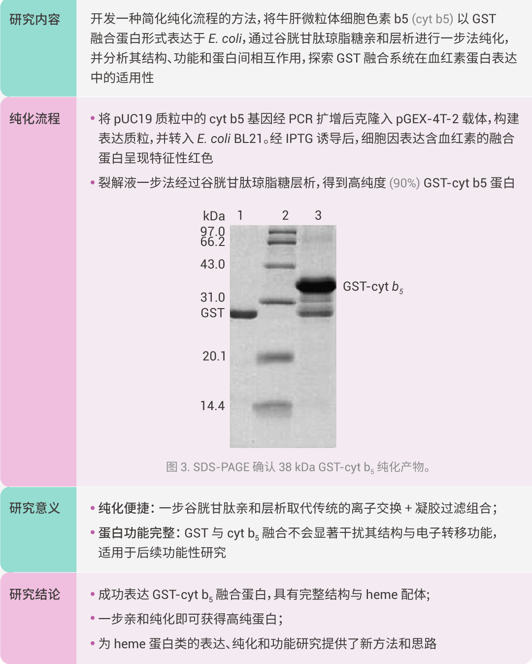 [7] Lin YW, et al. Expression of lipase-solubilized bovine liver microsomal cytochrome b5 in Escherichia coli as a glutathione S-transferase fusion protein (GST-cyt b5). Protein Expr Purif. 2006 Feb;45(2):352-8.