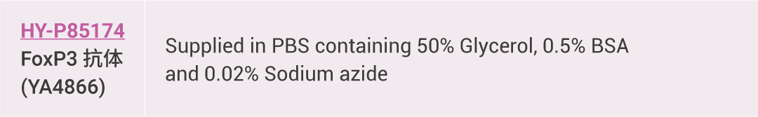 当然,每个抗体都有自己独特的特性,如下表所示,MCE 的研发团队根据不同抗体的特性,针对性使用不同缓冲体系,并在此基础上调整蛋白保护剂的剂量,选择最合适的防腐剂,加入冷冻保护剂等,以此来实现最大的保留及呈现抗体的最佳性能,助力科研工作: