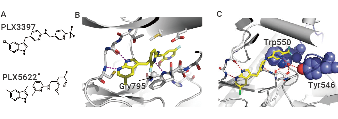 PLX5622 具备更优的药代动力学特性以及更高的血脑屏障通透性。它拥有较低的分子量、较高的亲脂性和良好的细胞通透性。