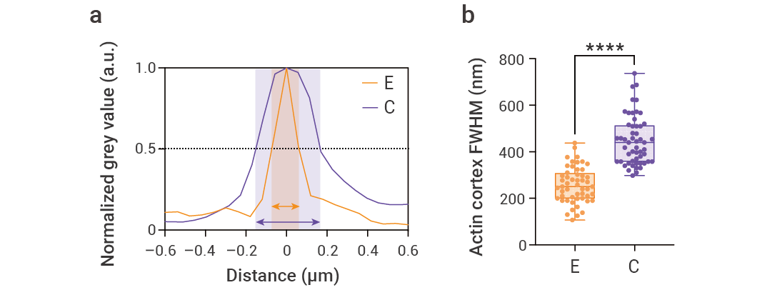 图 3. 压缩态细胞具有更厚的肌动蛋白皮层[2]。