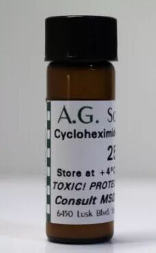 放线菌酮是一种在真核生物中对蛋白质生物合成过程有抑制效应的化合物,它是灰色链霉菌(Streptomyces griseus)的一种产物。它通过干扰蛋白质合成过程中的易位步骤而阻碍翻译过程。在生物药学研究中放线菌酮常被用来抑制生物体外真核细胞的蛋白质合成。这个方法非常有效、快速和相对廉价。而且通过将放线菌酮从试管中去除掉可以很快地取消它的作用。