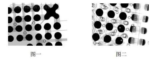 BGA的全称是Ball Grid Array球栅阵列结构的PCB,是一种大型组件的引脚封装方式,与 QFP的四面引脚相似,都是利用SMT锡膏焊接与电路板相连。BGA的产生使微焦点X射线源在SMT行业中得到广泛应用。BGA会出现什么问题呢?BGA的问题主要有四大类:连焊、气泡、冷焊和虚焊。 连焊比较容易发现,在X光下,连焊的现象如图一所示。