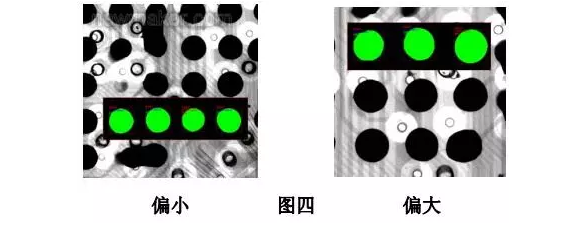 一般有两种常见的虚焊现象。如图四所示,这两种情况都是虚焊。第一种情况,球面积偏小。注意,我们这里说的是面积偏小,而不是球直径偏小。为什么呢?因为BGA球在熔化后,很少会有球是很圆的,多多少少都会受焊盘影响而不太规则,如图四所示:
