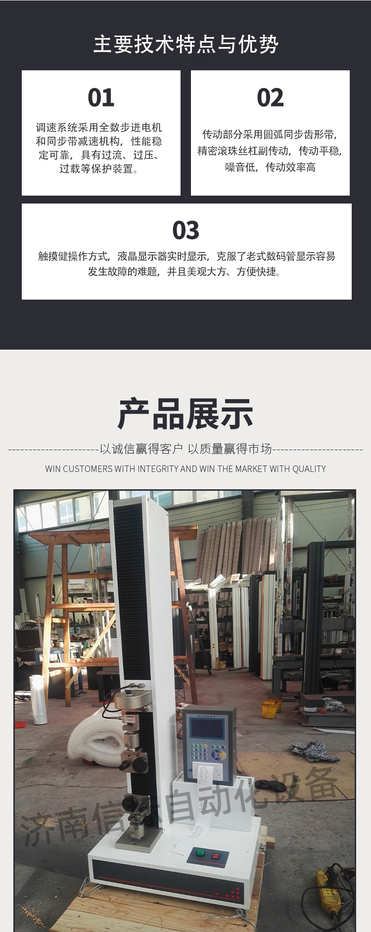 1、调速系统采用全数步进电机和同步带减速机构,性能稳定可靠,具有过流、过压、过载等保护装置。
