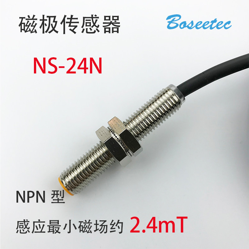 NS-24系列磁极检测识别传感器是一款耐环境、高灵敏度的磁极检测或磁性识别、磁性辩别的传感器。NS-24系列磁极侦测传感器通过与PLC单片机连接,可以非常灵敏的识别出磁性物体的N极、S极,是目前市面上灵敏度高的一款可以识别出磁铁及磁性物体的S极和N极的传感器。NS-24系列磁性辩别传感器采用四线制输出,N极和S极分别有独立对应的信号线输出,内置双色指示灯,红色对应N极,绿色对应S极输出。
