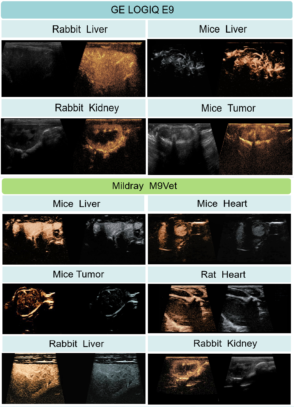Nano Prime超声微泡造影剂(XY-MB-11)具有优良的影像对比效果,可用于多种小动物体内成像。