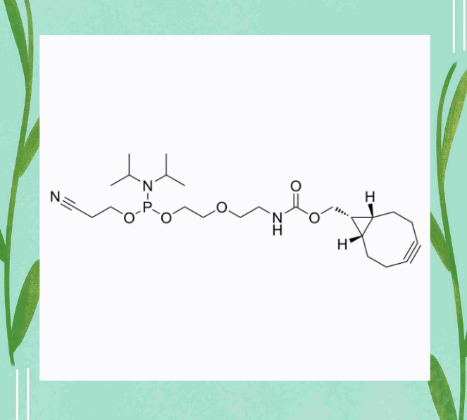 其分子结构凸显三大核心优势:其一,endo-BCN(内型环丙烷环辛炔)构型通过应变促进的叠氮-炔环加成反应(SPAAC)实现与叠氮化合物的高效偶联,不用铜催化剂介入,规避了铜离子对生物体系的毒性作用及核酸潜在损伤;其二,CE(氰乙基)保护基可有效稳定亚磷酰胺基团,防止其在核酸合成过程中发生水解,后续通过温和氨解条件即可脱除,确保核酸结构完整性不受影响;其三,该试剂与核酸固相合成流程高度兼容,其亚磷酰胺基团可与核酸链羟基反应,实现BCN基团在核酸末端或链中的特异性引入,满足多样化修饰需求