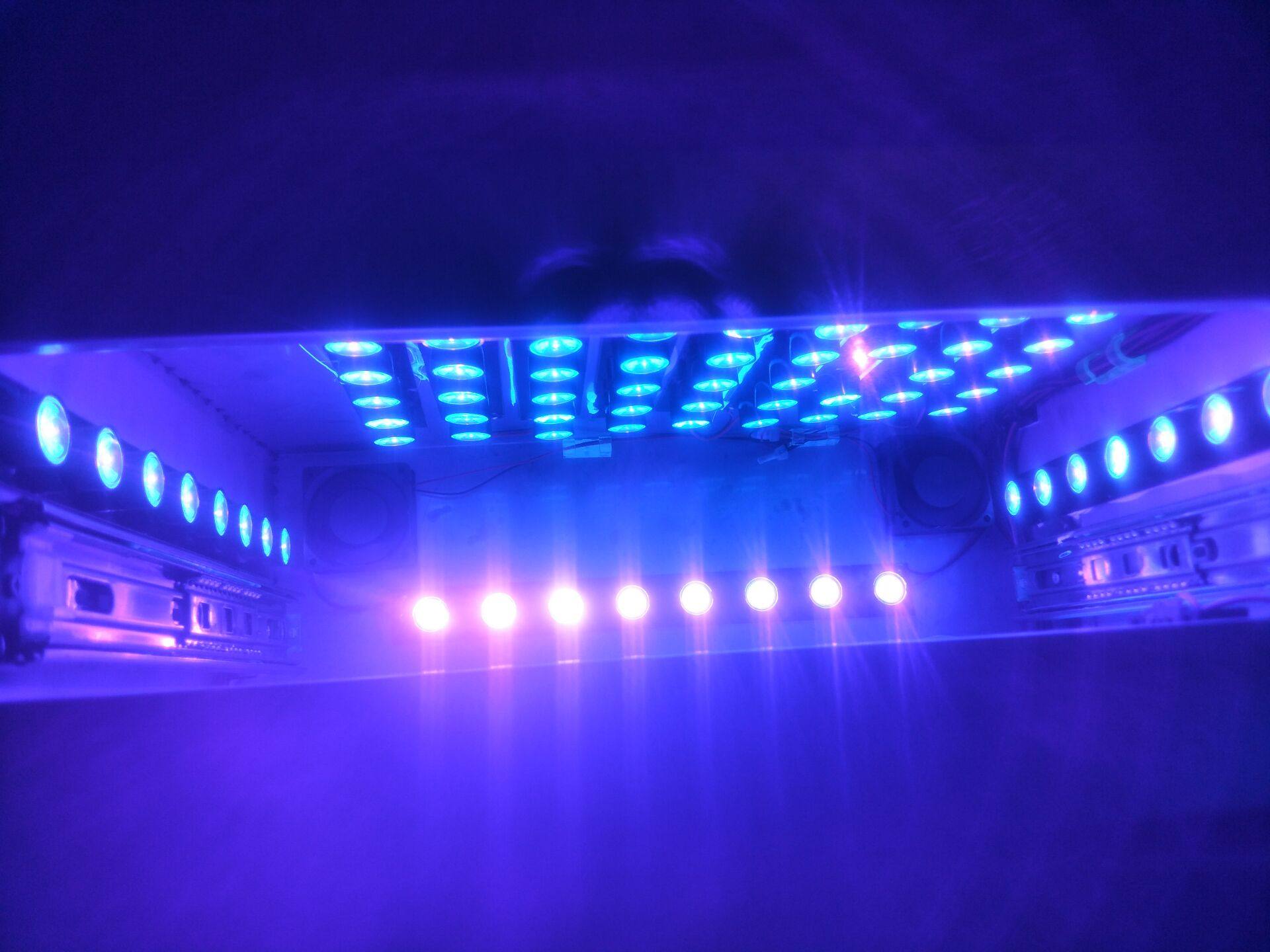 使用60-84颗395-365波段灯珠,左右上后4个方位对手机屏进行照射,能达到快速固化UV胶水作用,节能省电,定时操作,即使人不在机器身边,也能定时关闭机器!