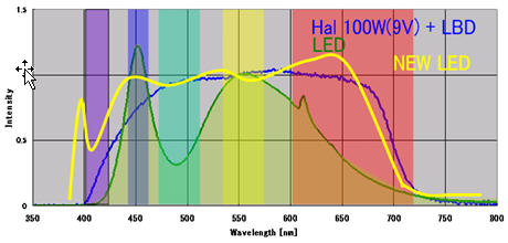 (1) Olympus全新的LED具有与卤素灯相似的波长特性,因此能从其发射中检到紫/青/红等目前商业化LED难以提供的光谱成分。
