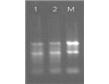图1 泳道1与2,在-80度保存一个月后的提取结果。第M泳道:标准的Hela细胞RNA