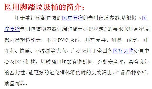 湖北康美诺环保科技有限公司是一家专业生产、设计、开发和销售医疗废物包装容器的环保型企业,本公司有专业的设计团队和优秀的销售队伍,能为各医院、医疗废物处置中心提供最…...  了解更多>>