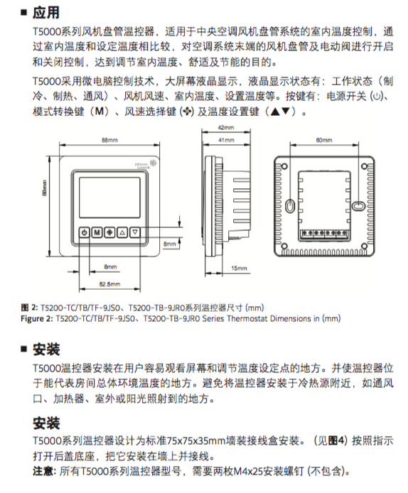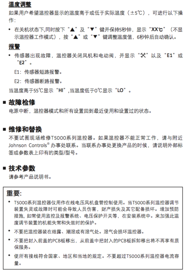 Johnson江森液晶温控器 T5200-TB-9JSO 酒店中央空调面板