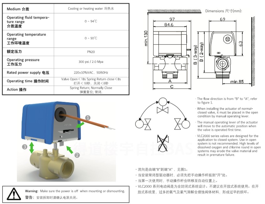 江森电动二通阀DN25VLC2200HC-C开关型空调风机盘管电动阀