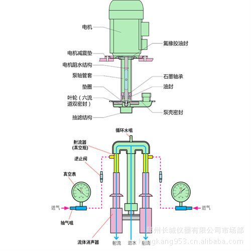 循环水式多用真空泵是以循环水作为工作流体,利用射流产生负压原理而设计的一种新型多用真空泵,为化学实验室提供真空条件,并能向反应装置提供循环冷却水。