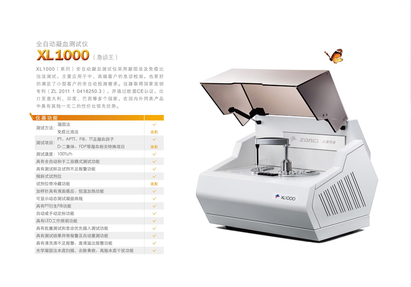 全自动凝血分析仪众驰XL1000产品特点: