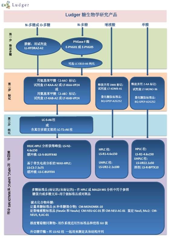Ludger糖基化分析和检测步骤图如下,可根据下图来选择Ludger产品: