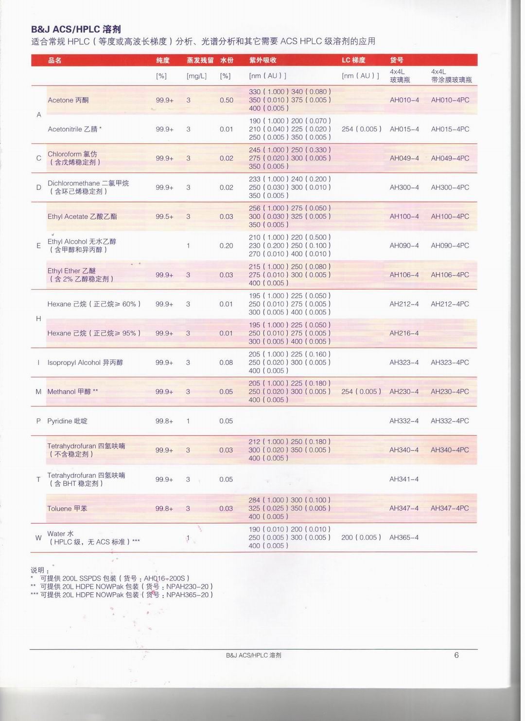 美国HoneywellHPLC乙腈甲醇水异丙醇正己烷